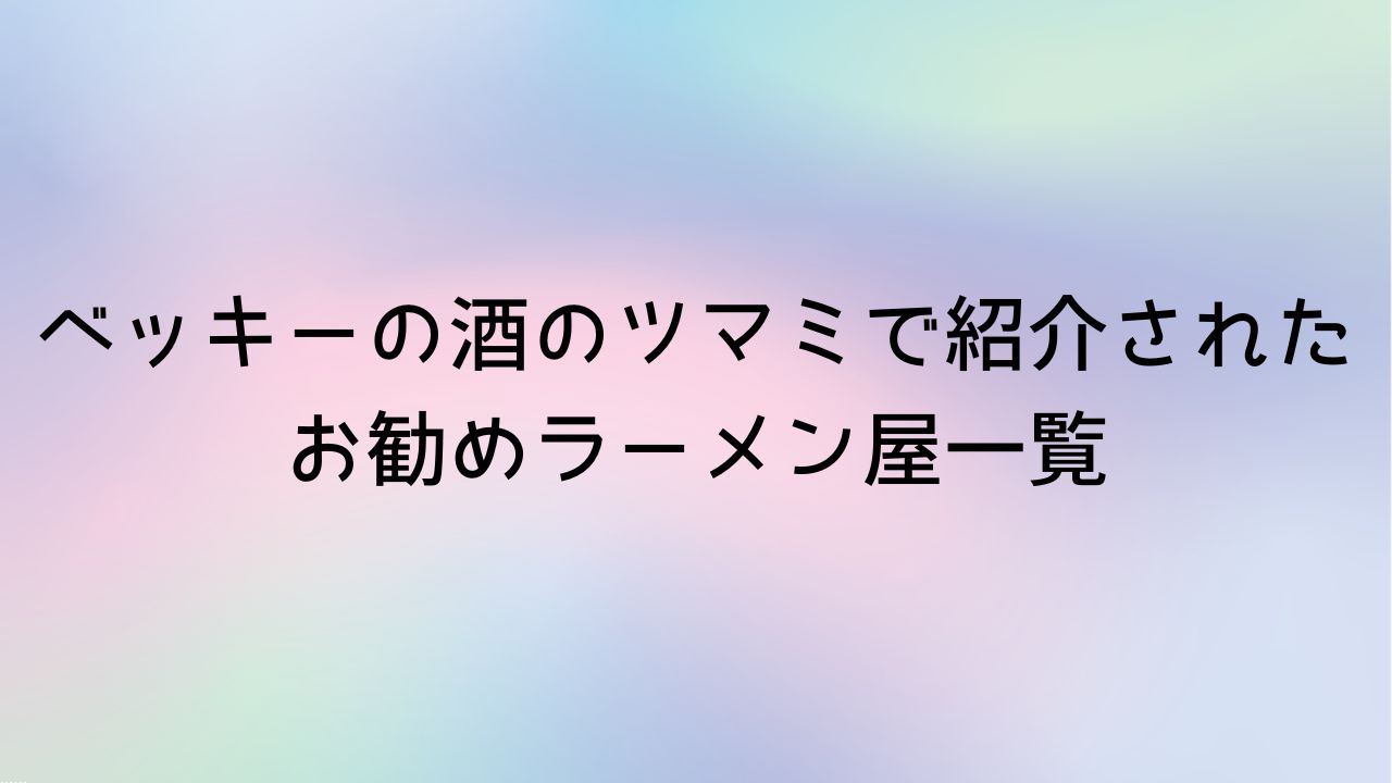 2025年4月放送の「酒のツマミになる話」で、出演者の一人であるベッキーさんが情熱たっぷりに紹介したラーメン店の情報を中心にまとめて、紹介しました。